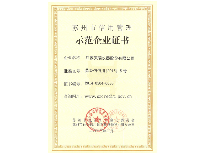 蘇州市信用管理示范企業(yè)證書