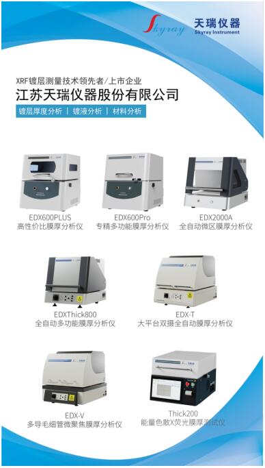 天瑞儀器擁有30多年XRF技術(shù)經(jīng)驗,一直是國內(nèi)XRF行業(yè)技術(shù)的引領(lǐng)者。公司在鍍層測厚、RoHS檢測、電鍍液成分分析領(lǐng)域構(gòu)建了強大的技術(shù)實力,能夠為您提供種類豐富、性能卓越的檢測設(shè)備與定制化方案。