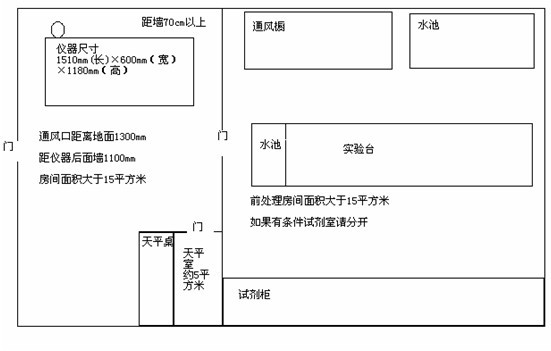 ICP-2000型ICP掃描光譜儀的外形尺寸為1510mm(長(zhǎng))×600mm(寬)×1180mm(高),重量為300kg ,發(fā)貨時(shí)四角裝有減震器,儀器運(yùn)到用戶(hù)后卸下減震器,換上螺絲桿,當(dāng)儀器選好位置后,將螺絲桿旋出使四角輪懸空,調(diào)節(jié)螺絲桿使儀器至水平,為保持儀器性能穩(wěn)定及便于維護(hù),ICP-2000 周?chē)仨毩舫龉┚S護(hù)人員維護(hù)儀器所需的空間(安裝臺(tái)距后面墻面至少70cm)