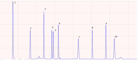圖2.多溴聯(lián)苯標(biāo)準(zhǔn)樣品色譜圖