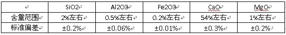 陽極靶材料:Rh;管壓:45kV;管流:3.5mA;定量分析方法:經(jīng)驗(yàn)系數(shù)法