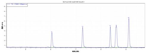 圖2. 6種目標(biāo)物總離子流色譜圖