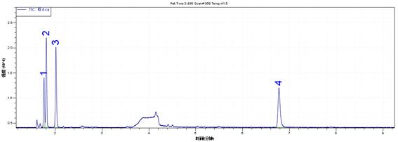 測(cè)定方式:TIC(FULL SCAN)定性(掃描范圍:45-180amu),SIM模式定量。