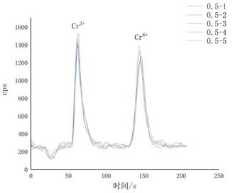 多次進樣測定濃度為0.5 μg/L Cr3+和Cr6+混合標(biāo)準(zhǔn)溶液,進行重復(fù)性試驗,見圖3: