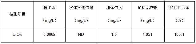 本文通過(guò)TIC-660離子色譜儀快速準(zhǔn)確的分析了瓶裝礦泉水中的溴酸鹽的含量,選擇合適比例的淋洗液濃度及流速可以很好的規(guī)避氯離子的干擾。從測(cè)試結(jié)果看,該方法檢出限低、準(zhǔn)確度高、重現(xiàn)性好,為瓶裝及桶裝飲用水的監(jiān)測(cè)提供了強(qiáng)有力的技術(shù)支撐。