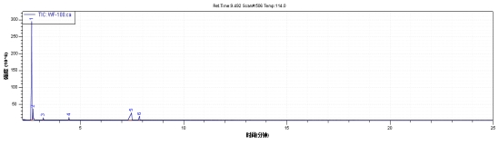 將樣品用乙酸乙酯稀釋合適倍數(shù)后,準確吸取1μl溶液進行測試,譜圖和檢測結果如下