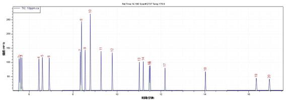 測(cè)定方式:TIC(FULL SCAN)定性(掃描范圍:45-300amu),SIM模式定量。