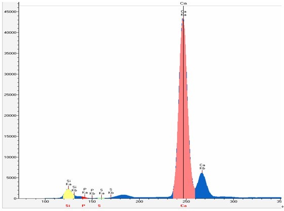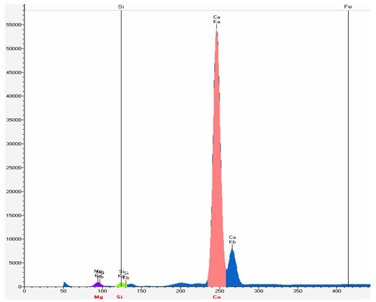 以下使用EDX 3600B型對(duì)白云石國(guó)標(biāo)樣GBW07216A實(shí)際測(cè)試的所得的譜圖,工作曲線等相關(guān)數(shù)據(jù):